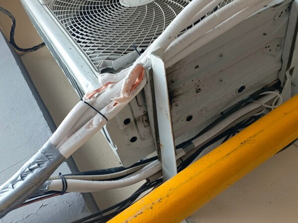 В одном из объектов наружные блоки кондиционеров были повреждены в результате наезда грузовой машины. Оборудование получило серьезные механические повреждения: деформированы корпуса, порваны фреоновые магистрали, нарушена теплоизоляция, произошла утечка хладагента.