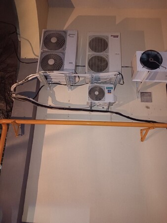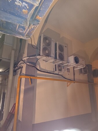 Наша команда организовала срочный выезд на объект, выполнила демонтаж поврежденных блоков с помощью автовышки, провела замену участков трассы, пайку, теплоизоляцию и монтаж новых кронштейнов. После восстановления герметичности система была вакуумирована и повторно заправлена фреоном. Кондиционеры успешно запущены и работают в штатном режиме.
